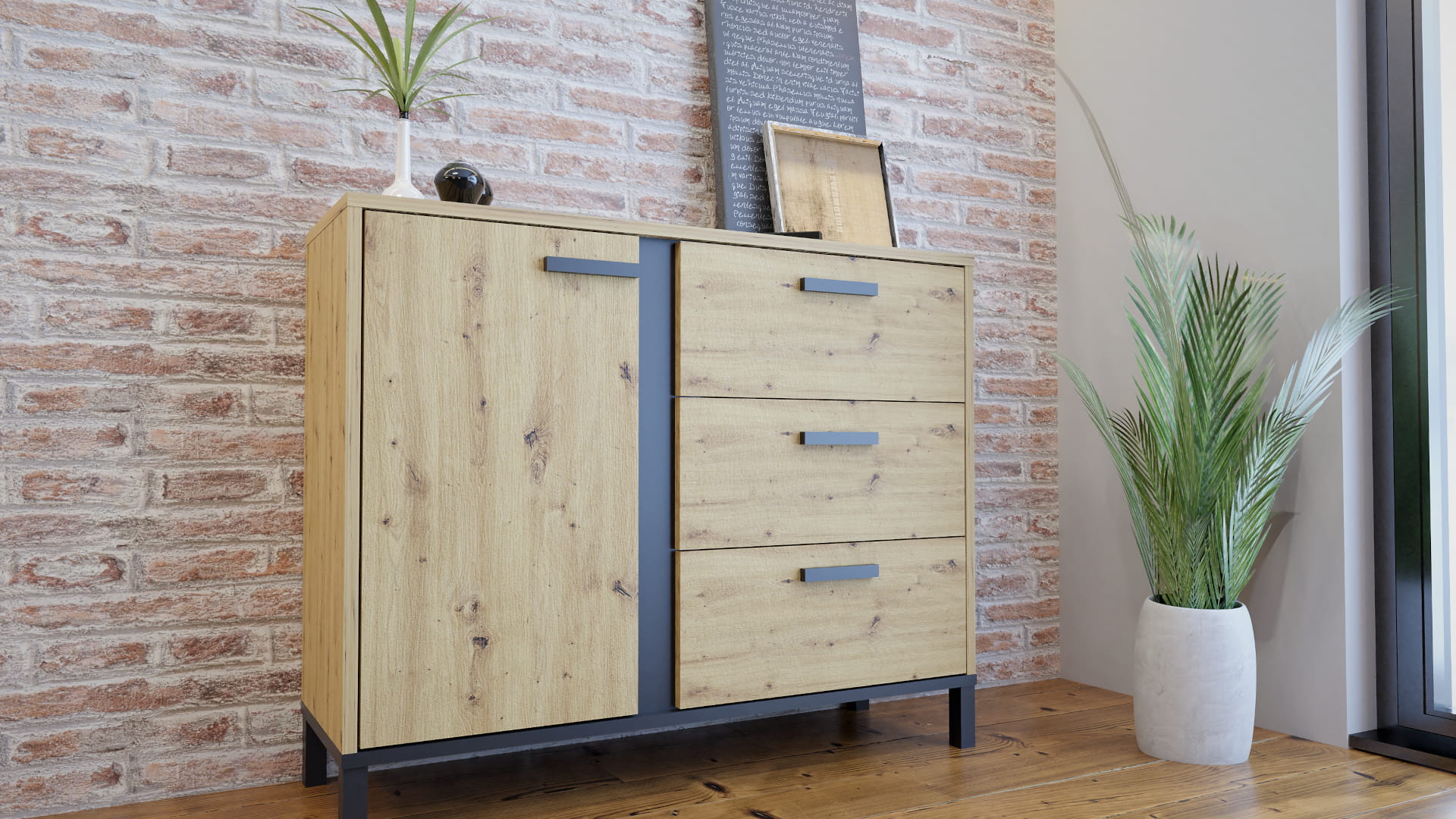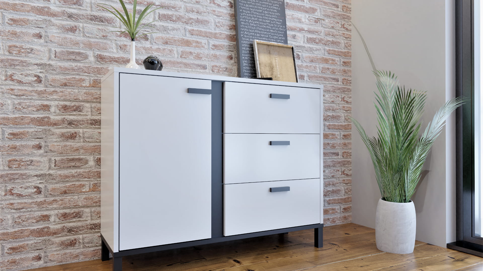 KOMODA BRILO TO MEBLE DLA OSÓB ODWAŻNYCH I ZDECYDOWANYCH , NIE BOJĄ SIĘ NIEBANALNEGO WZORNICTWA ORAZ WYRAFINOWANYCH BRYŁ PASUJĄCYCH DO NOWOCZESNYCH SALONÓW MEBLE WYKONANE ZOSTAŁY Z PŁYTY LAMINOWANEJ O WYSOKIEJ ODPORNOŚCI NA ZARYSOWANIA