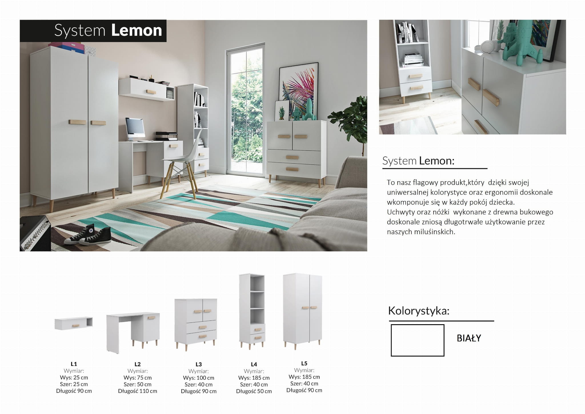 KOMODA LEMON jest uzupełnieniem zestawu/meblościanki LEMON będącego nowoczesną propozycją w kategorii mebli pokojowych młodzieżowych charakteryzując się eleganckim w swojej prostocie wzornictwem brył. Dzięki modułowej budowie KOMODA LEMON jest idealnym rozwiązaniem tak do mniejszych jak i przestronnych wnętrz.