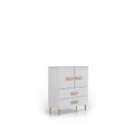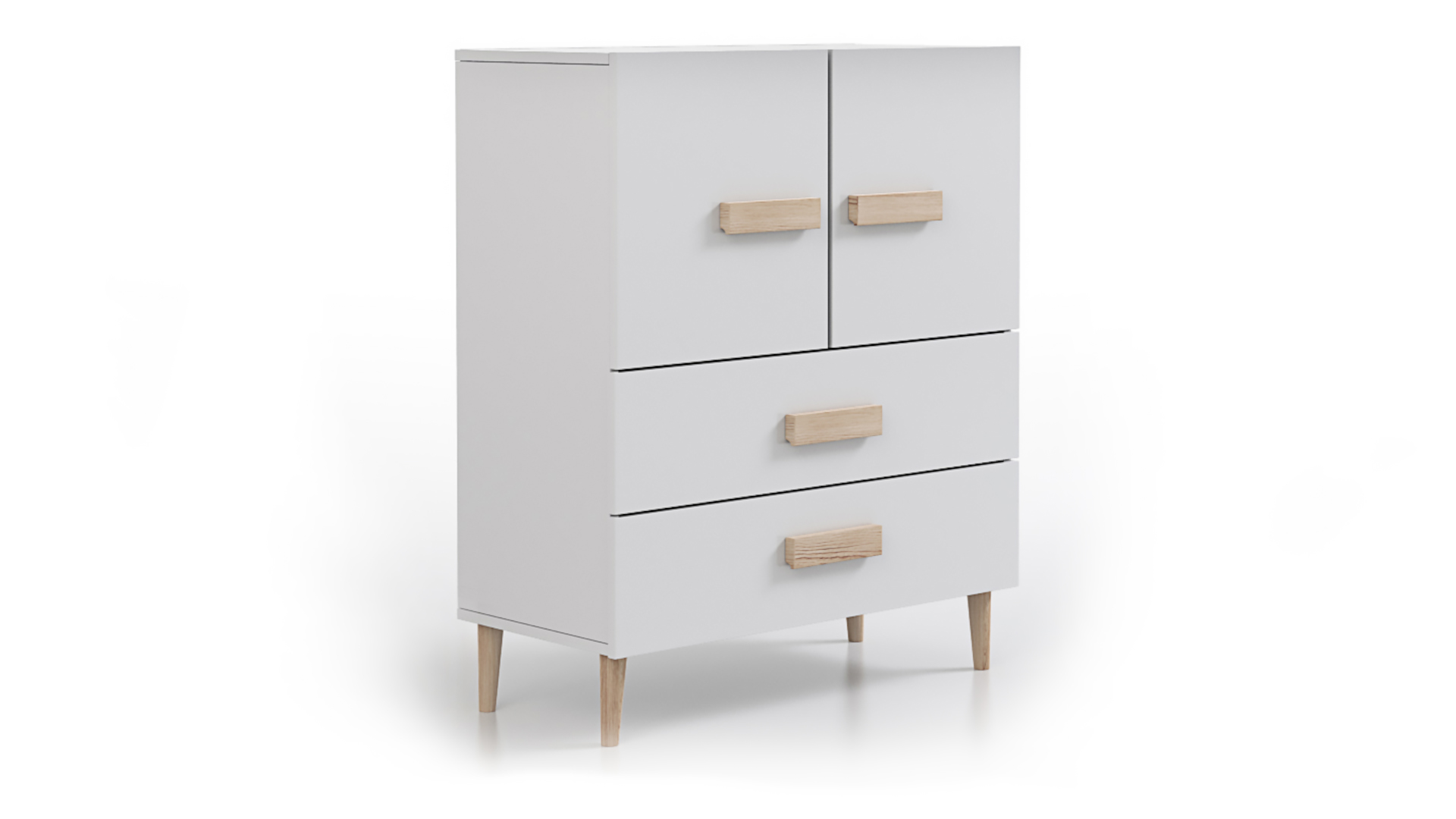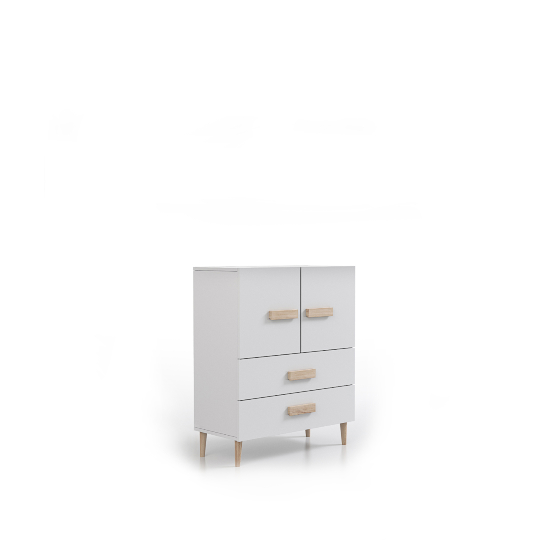 Komoda dziecięca młodzieżowa Lemon w kolorze Białym na wysokich nóżkach - 2 drzwiowa / 2 szuflady / 182x90x50 cm / uchwyty drewniane