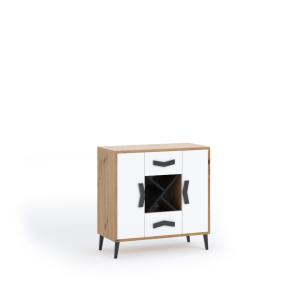 Komoda młodzieżowa Hix Artisan-Grafit-Biały - 106×90×40 cm na nóżkach / drewniany uchwyty grafit