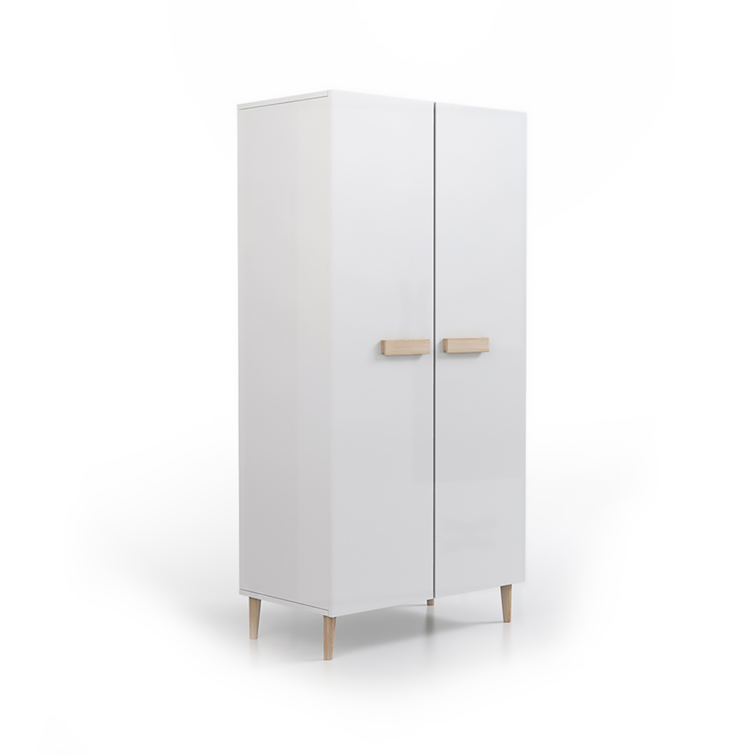 Szafa dziecięca młodzieżowa Lemon w kolorze Białym na wysokich nóżkach - 2 drzwiowa / 182x90x50 cm / uchwyty drewniane