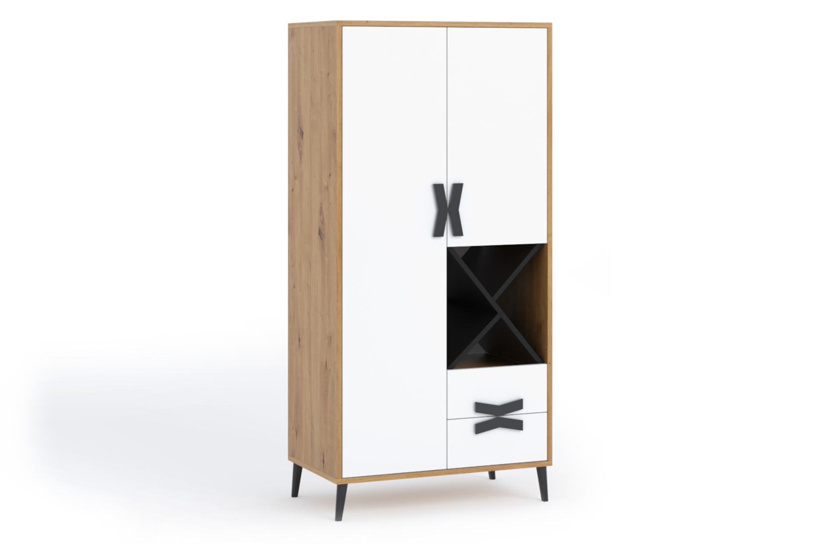 Szafa młodzieżowa Hix Artisan-Grafit-Biały - 90×182×50 cm na nóżkach / drewniany uchwyty grafit