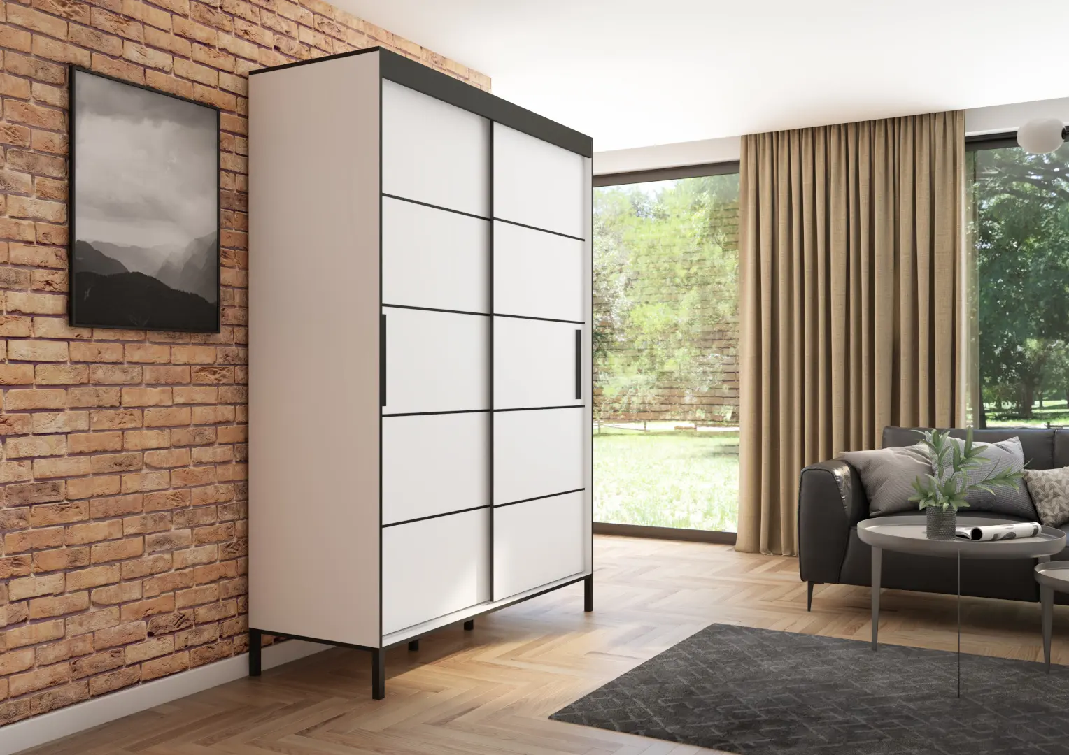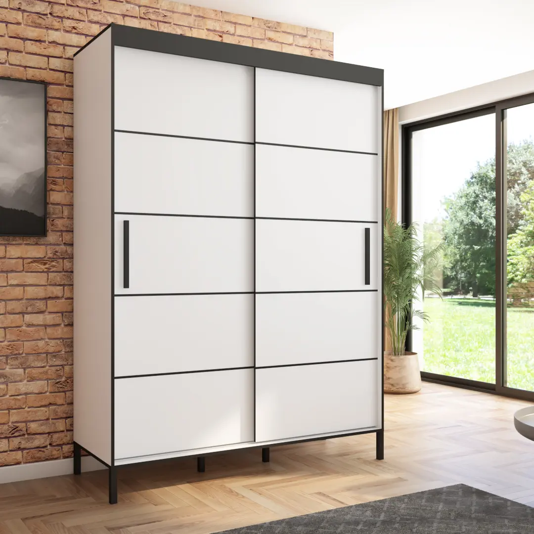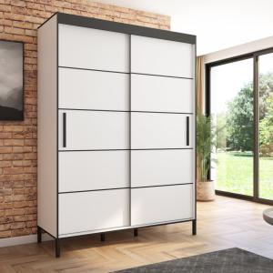 Szafa przesuwna Braga 160, Biała, Czarne listwy