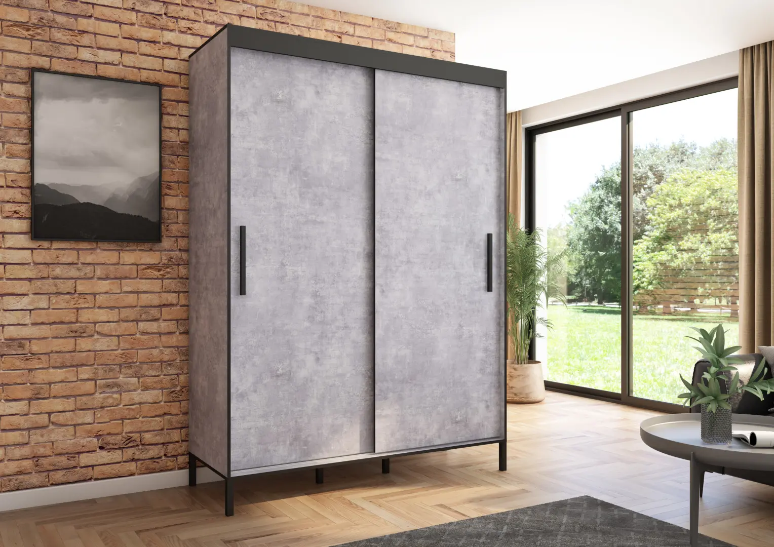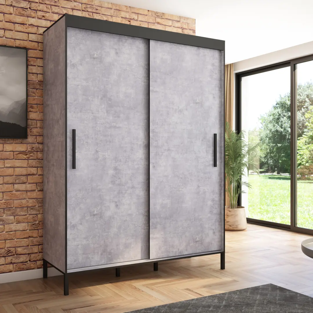 Szafa przesuwna Braga 160 gładka, Beton, Czarne uchwyty