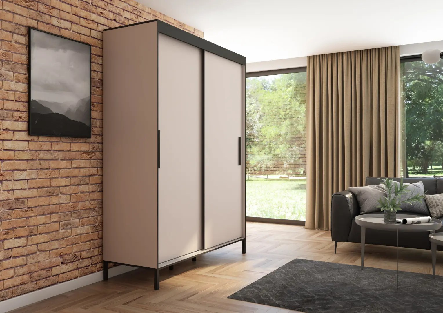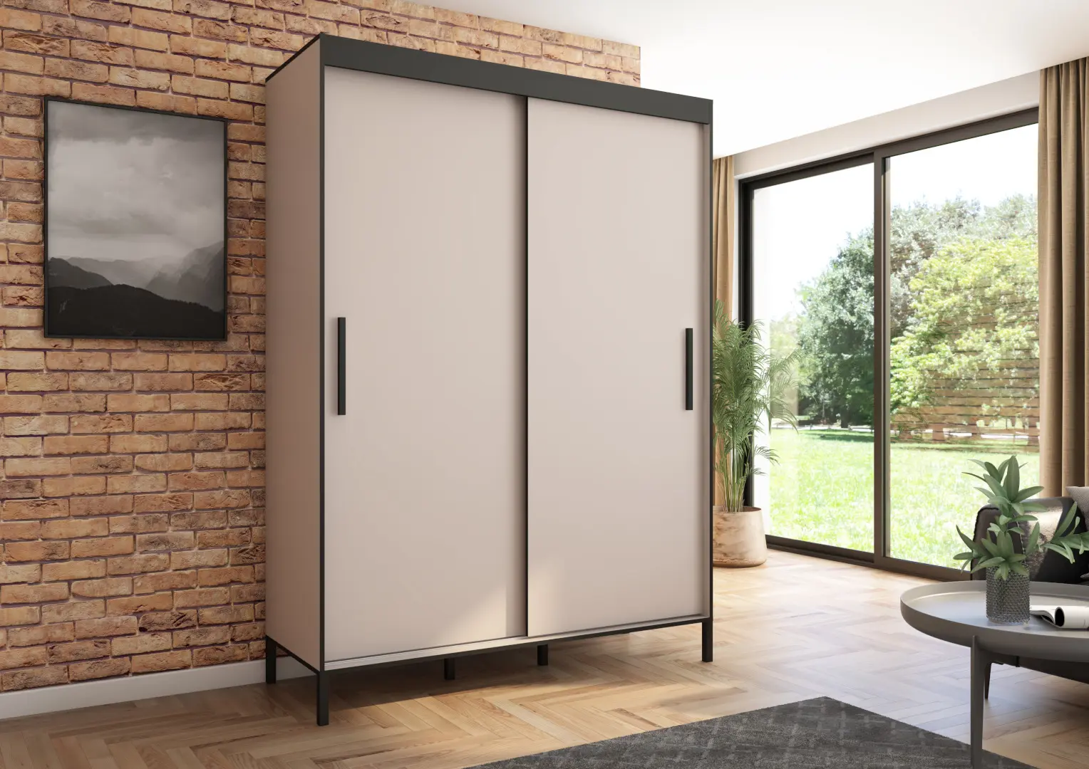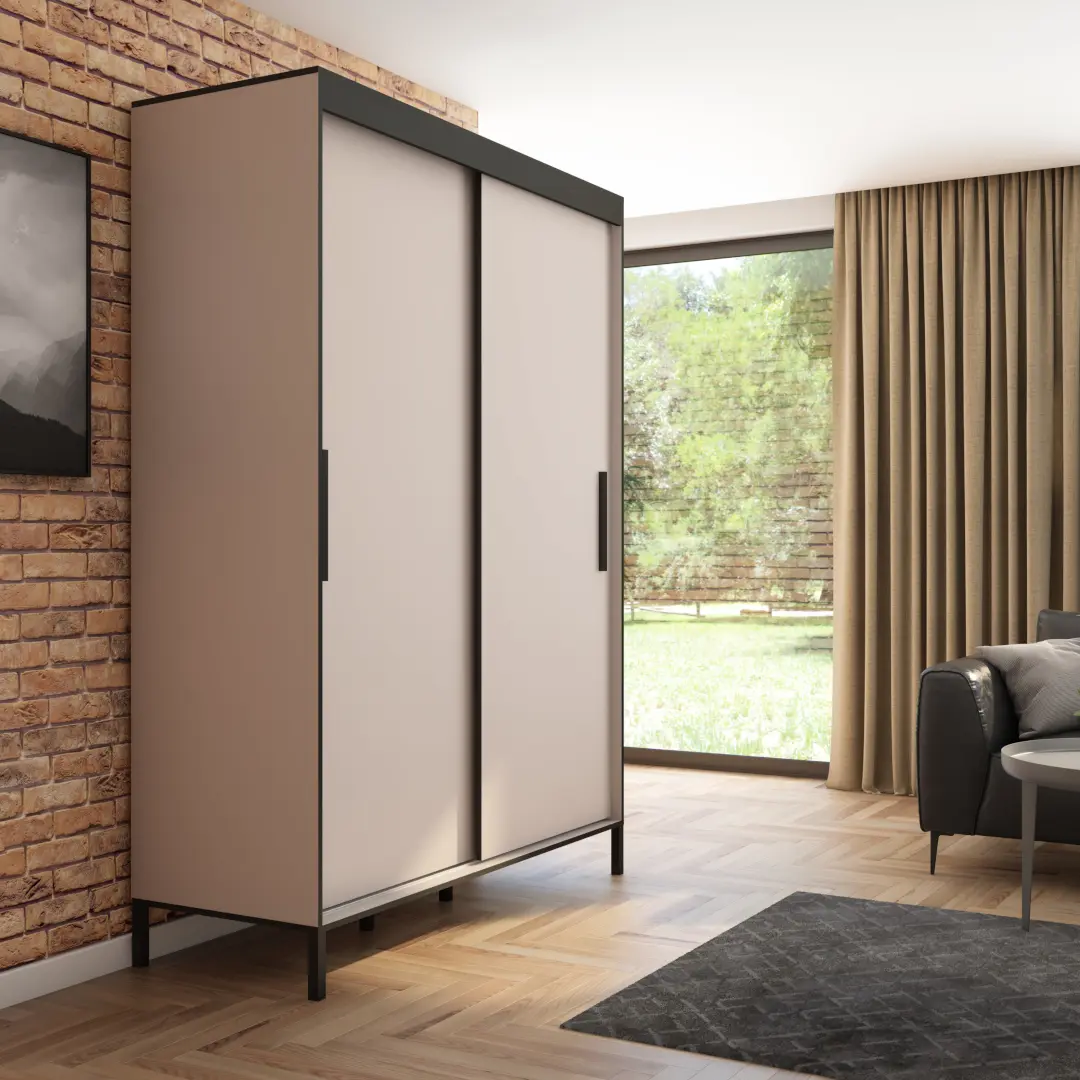 Szafa przesuwna Braga 160 gładka, Kaszmir, Czarne uchwyty