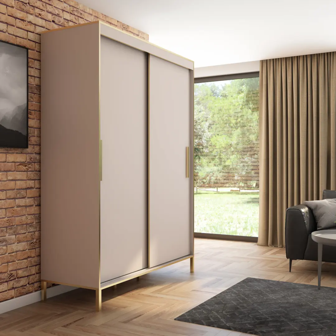 Szafa przesuwna Braga 160 gładka, Kaszmir, Złote uchwyty