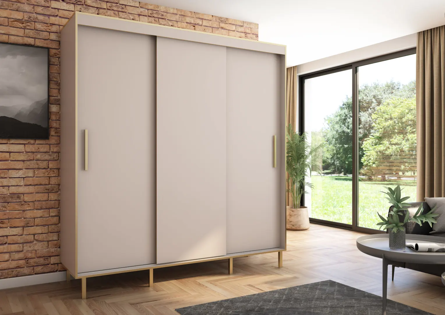 Szafa przesuwna Braga 205 gładka, Kaszmir, Złote uchwyty