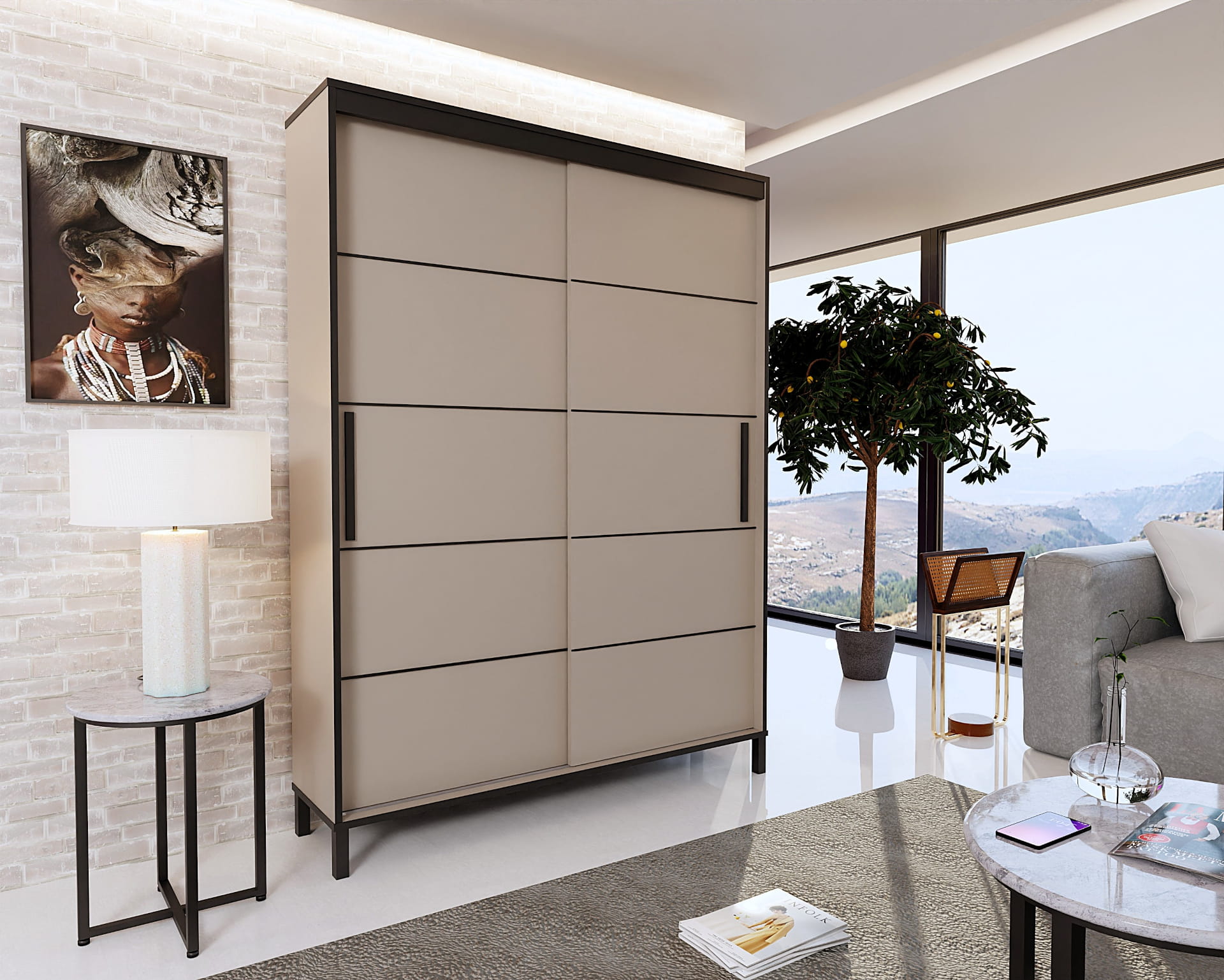 Super szafa - bardzo praktyczna, przesuwne drzwi to świetne rozwiązanie, które oszczędza miejsce. Kolor Kashmir wygląda świetnie i pasuje do każdego wnętrza, a czarne listwy dodają jej nowoczesnego charakteru. Montaż był szybki, a szafa jest naprawdę pojemna.