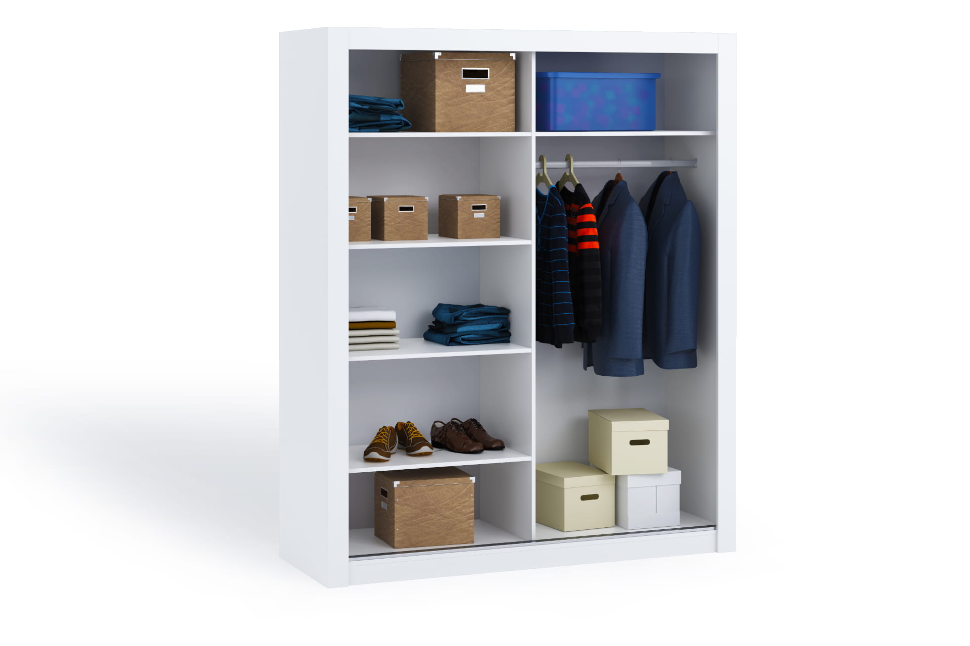 WNĘTRZE NASZEJ SZAFY TO BARDZO POJEMNE ORAZ DOSTOSOWANA DO ERGONOMICZNYCH STANDARDÓW PRZESTRZEŃ GDZIE ZNAJDZIE SIĘ MIEJSCE NA WSZYSTKO. PÓŁKI ORAZ DRĄŻEK TAK JAK NA FOTO W ZESTAWIE OKUĆ.